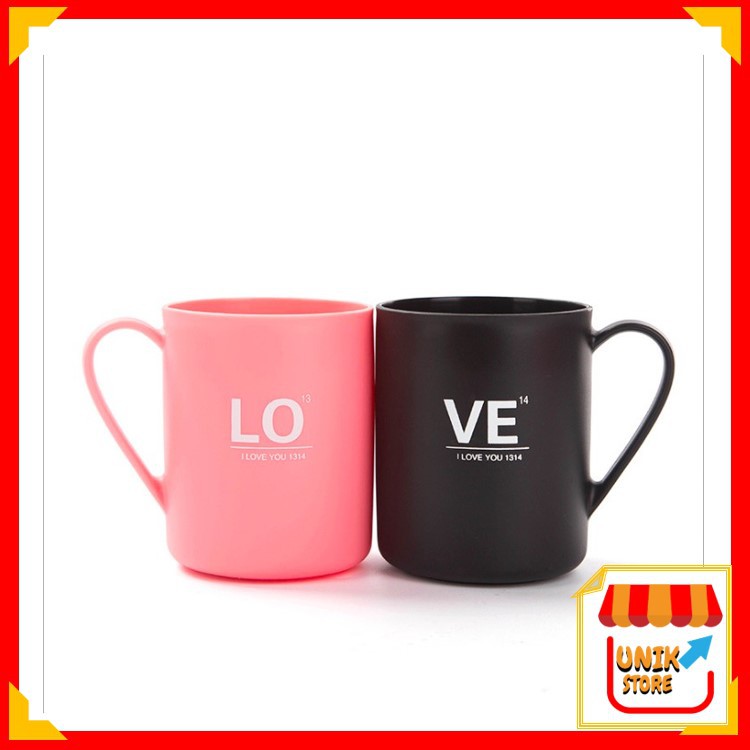 UNIK - (1 PCS) H622 Gelas Couple Plastik LOVE / Gelas Couple Black White and Tosca Pink