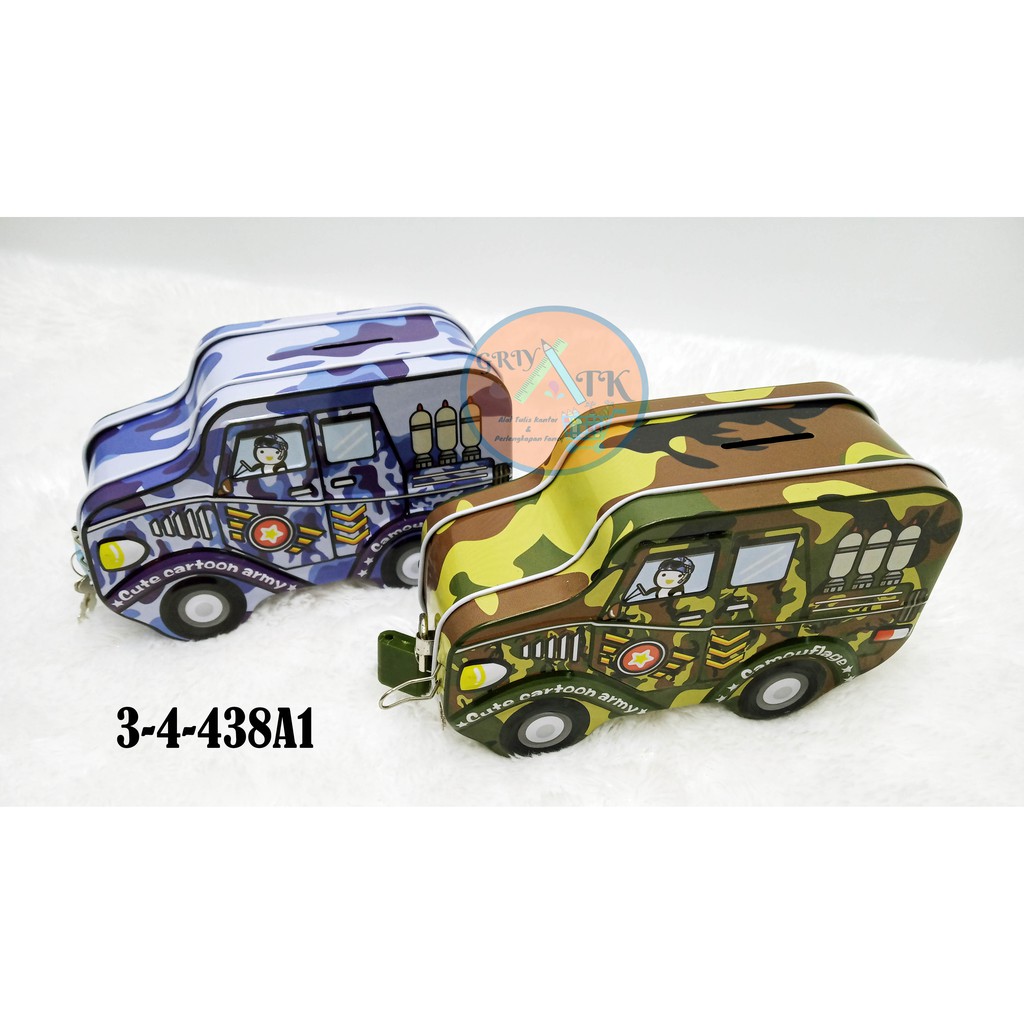 Celengan Kaleng Lucu dan Unik Karakter Mobil Army doreng militer