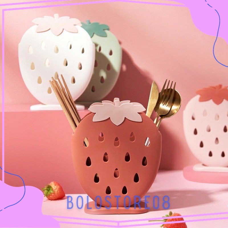 [TSS] Tempat Tirisan Sendok Garpu Motif Strawberry Lucu / Wadah Unik Motif Strawberry Serbaguna Lucu